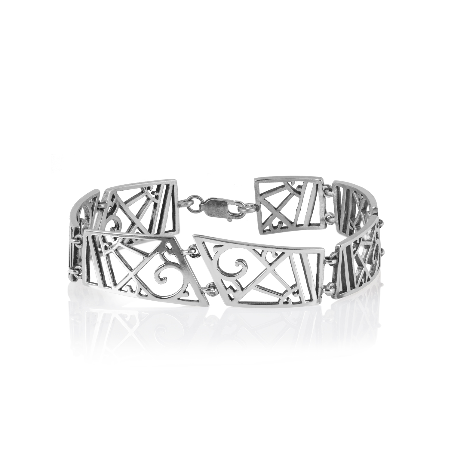 Polsera d'eslabons calada de plata de llei inspirada en l'obra de l'arquitecte modernista Domènech i Montaner.