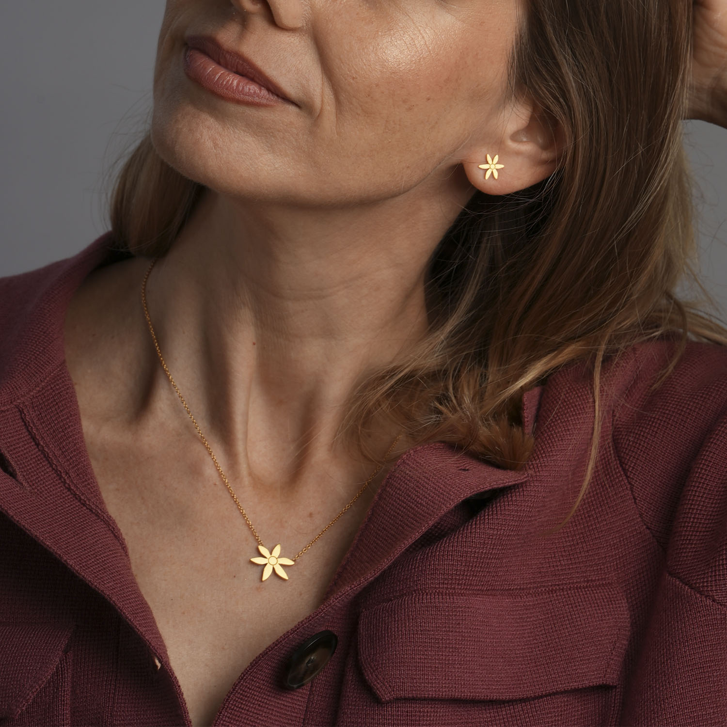 Necklace with the saffron flower in gold plated silver 925mm with a matt finish. Forced silver chain with gold plating and spring closure.