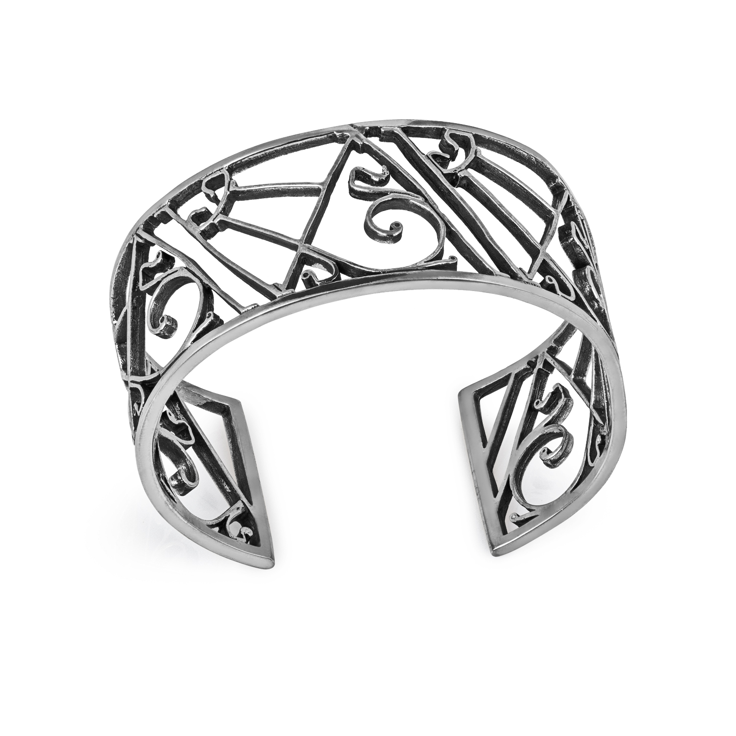 Brazalete rígido calado de plata basado en la obra del arquitecto modernista Domenech i Montaner.